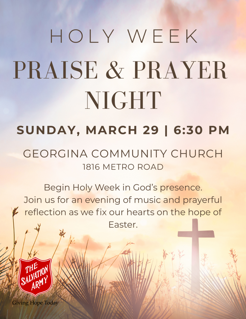 For more information about upcoming events, find us on Facebook: https://www.facebook.com/salvationarmygeorgina/